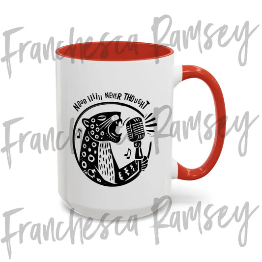 "No, I Never Thought" leopards eating faces mug